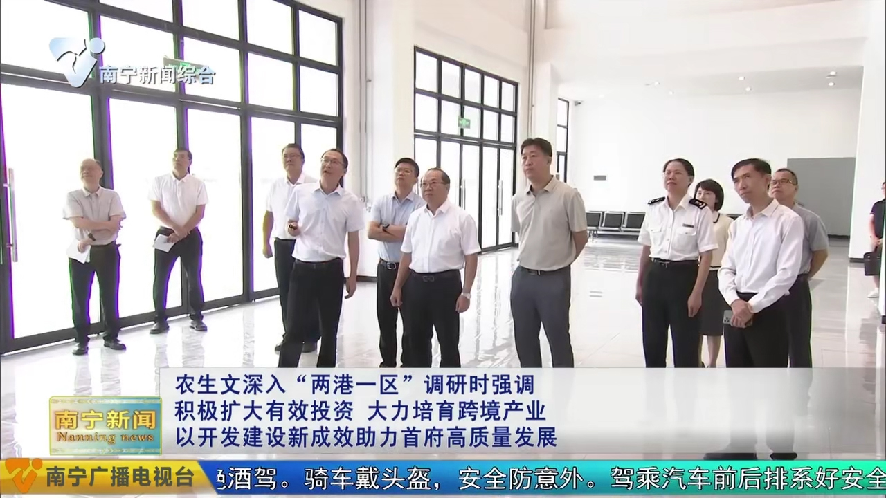 7月8日,自治區(qū)黨委常委、市委書記農(nóng)生文到“兩港一區(qū)”調(diào)研開發(fā)建設(shè)情況,強(qiáng)調(diào)要深入貫徹落實(shí)習(xí)近平總書記關(guān)于對外開放的重要論述和關(guān)于廣西工作論述的重要要求,進(jìn)一步樹牢開放發(fā)展理念,堅持貿(mào)易先行、貿(mào)工結(jié)合、以貿(mào)促工,充分發(fā)揮空港、鐵路港、公路港協(xié)同聯(lián)動和綜合保稅區(qū)政策優(yōu)勢,積極擴(kuò)大有效投資,暢通跨境物流通道,大力培育跨境產(chǎn)業(yè),不斷開創(chuàng)“兩港一區(qū)”開發(fā)建設(shè)新局面,為加快建設(shè)面向東盟開放合作的國際化大都市注入強(qiáng)勁動力。