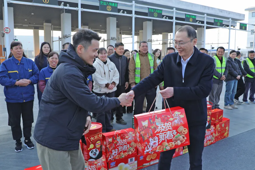 新春將至,暖意先行。連日來(lái),南寧交投集團(tuán)領(lǐng)導(dǎo)班子成員組成多個(gè)慰問(wèn)檢查組,深入南寧國(guó)際鐵路港海關(guān)監(jiān)管作業(yè)場(chǎng)所、南賓公路項(xiàng)目、宋村電廠、伶俐燃?xì)鈭?chǎng)站、鳳嶺客運(yùn)站、民生碼頭等地,慰問(wèn)堅(jiān)守在重點(diǎn)項(xiàng)目及關(guān)鍵崗位的一線黨員、職工,同時(shí)開展歲末年初節(jié)前安全生產(chǎn)工作檢查,保障各項(xiàng)生產(chǎn)經(jīng)營(yíng)工作平穩(wěn)有序運(yùn)行。