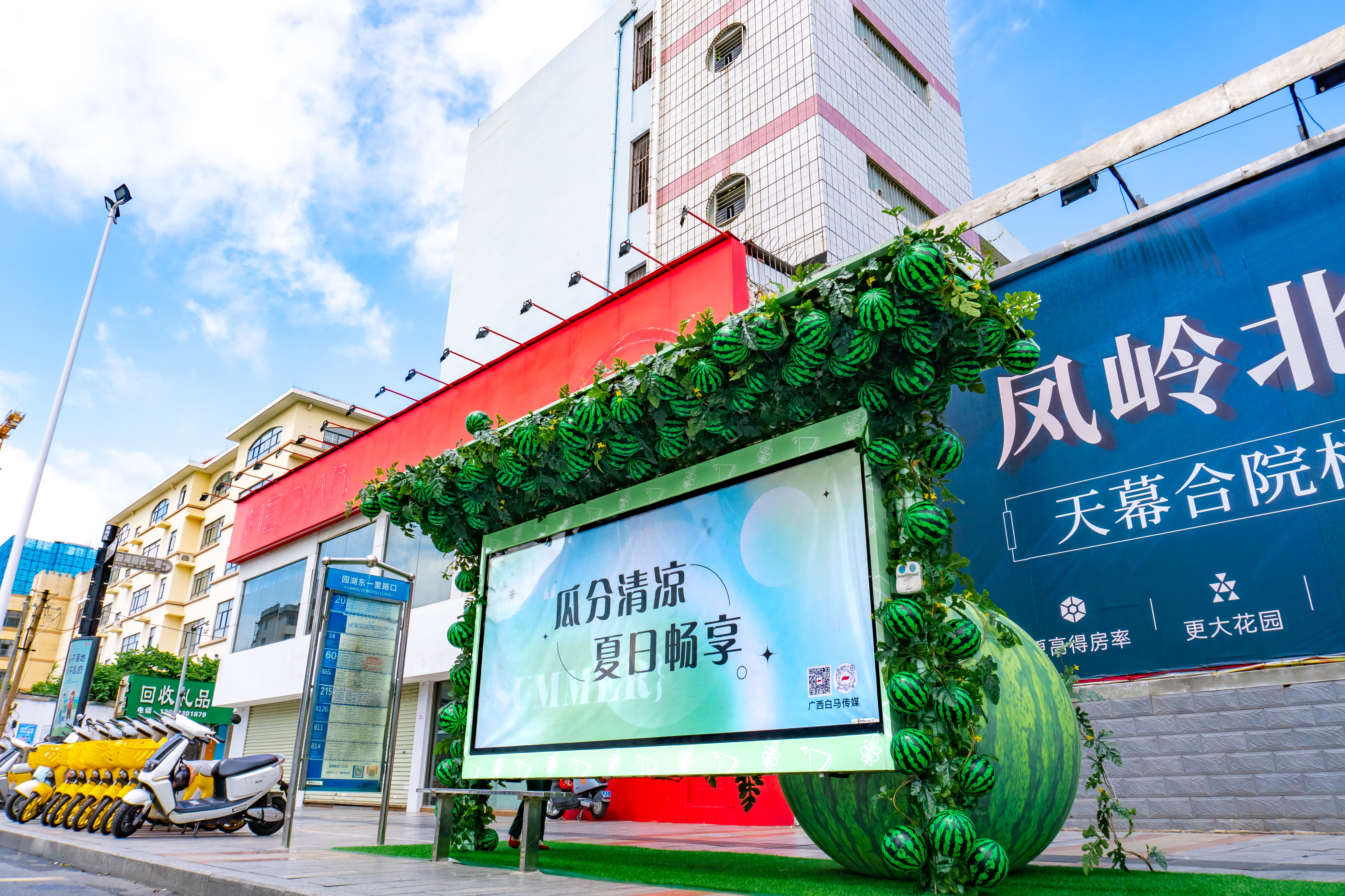 公交候車亭清新變裝 西瓜主題清爽一夏